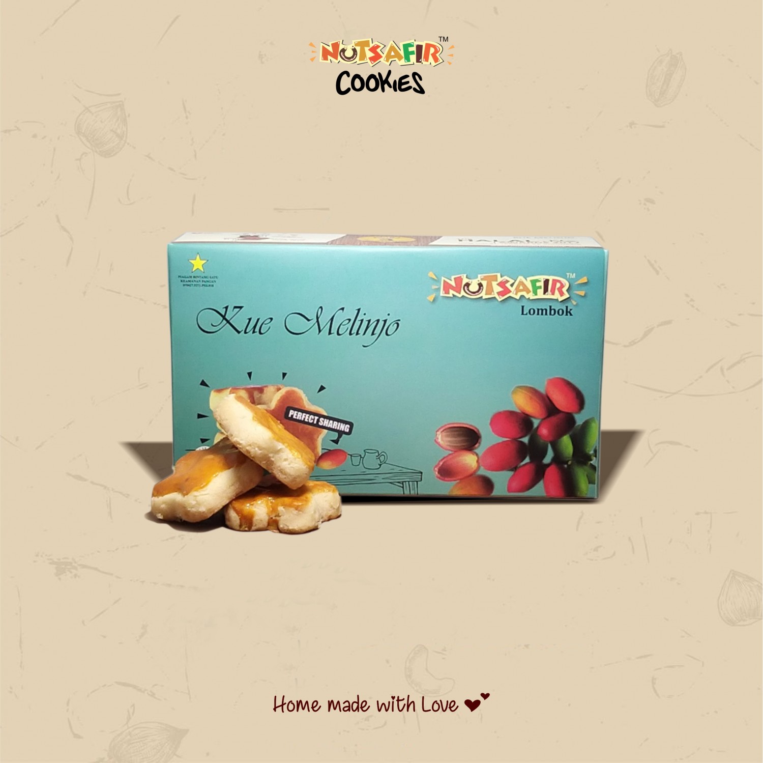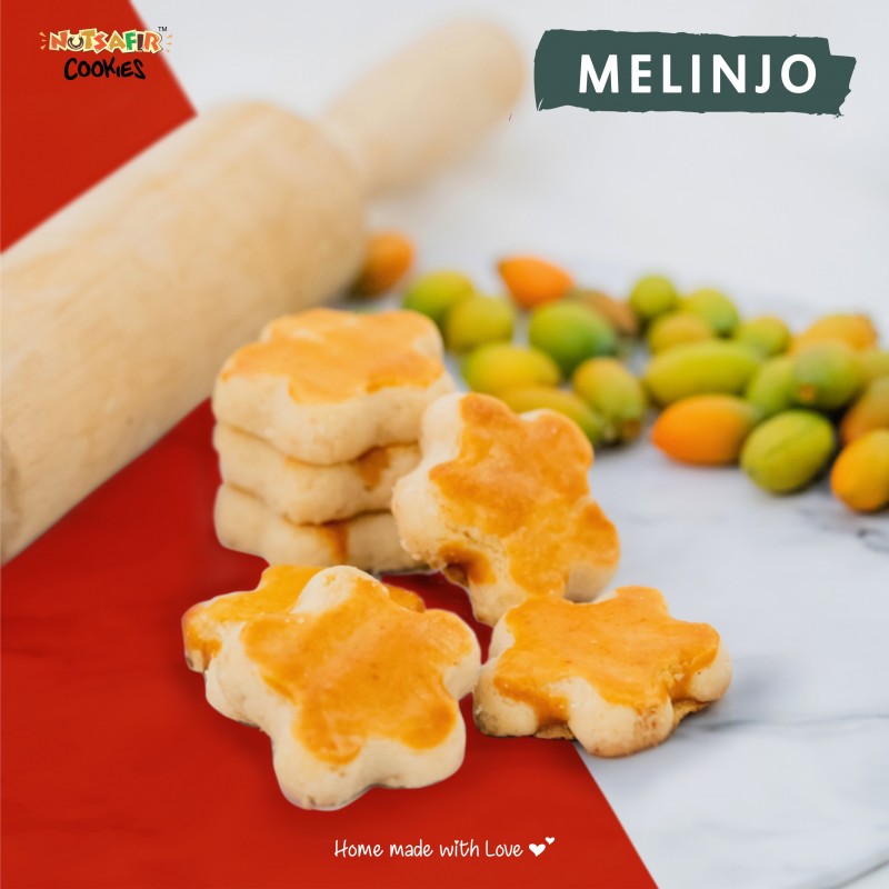 NUTSAFIR COOKIES MELINJO berbahan dasar Emping Melinjo berkualitas tinggi.