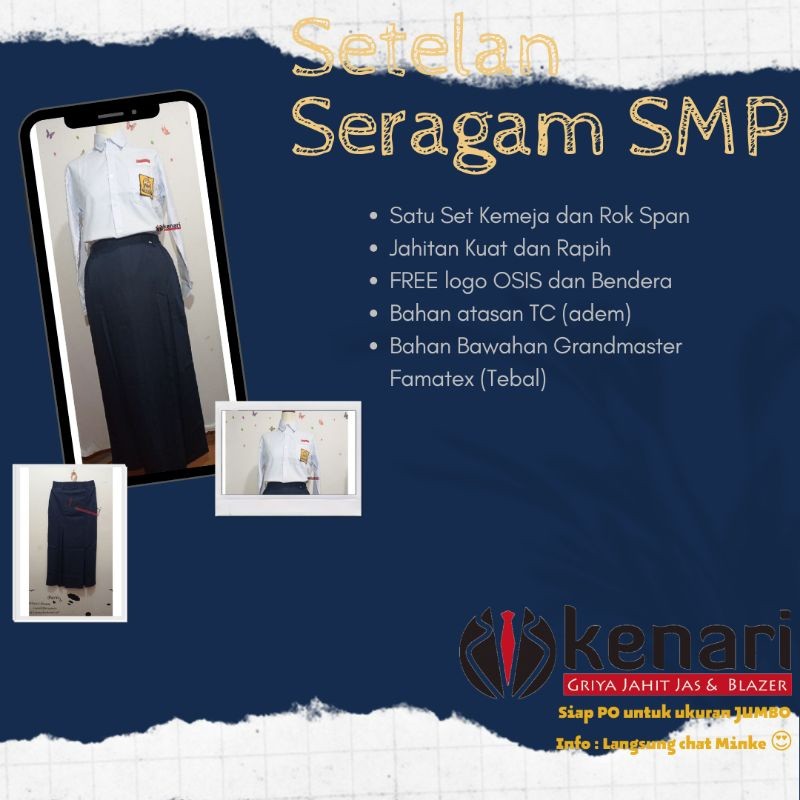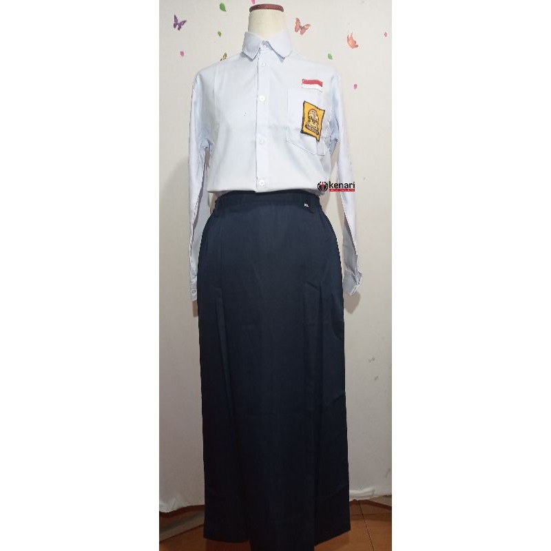 Seragam Sekolah Putih Biru Navy Perempuan Satu stel, Lengan Panjang