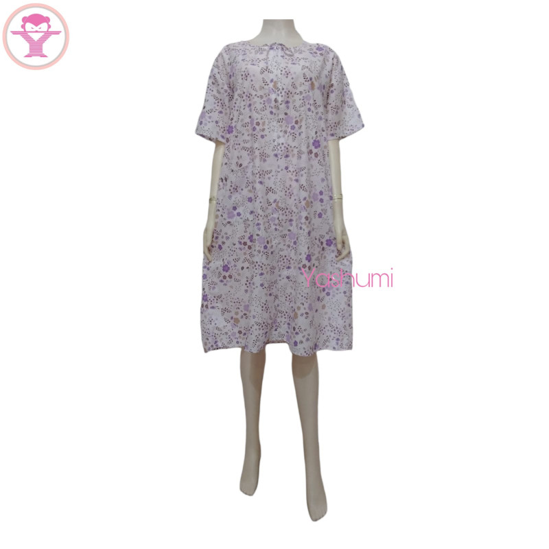 YASHUMI Daster Leher Bulat Restleting Katun Motif Bunga