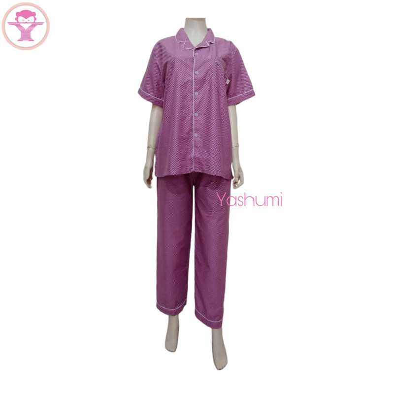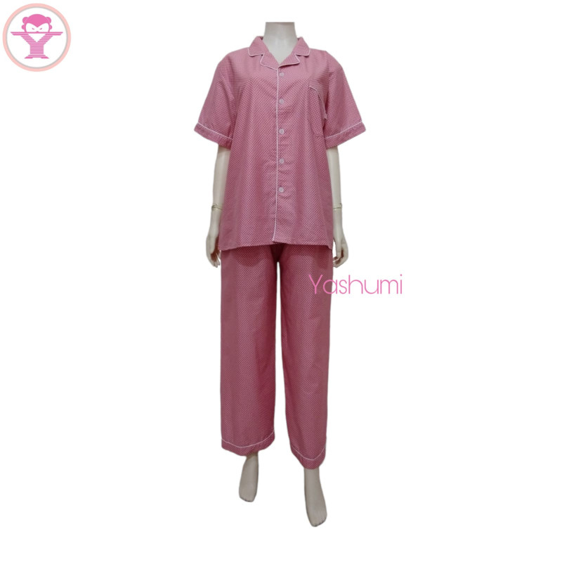 ?YASHUMI Piyama Babydoll Krah Kancing Full Katun Premium Motif Nik2?
