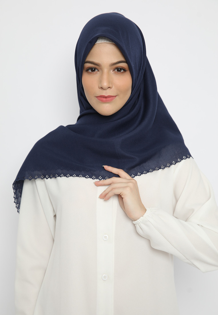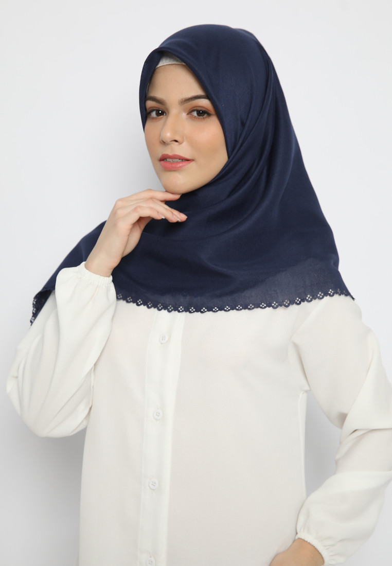 Jilbab segiempat memiliki finishing laser cut bunga yang cantik, menggunakan material voal magical yang nyaman digunakan untuk aktifitas sehari-hari. Packaging pouch yang bisa digunakan kembali.