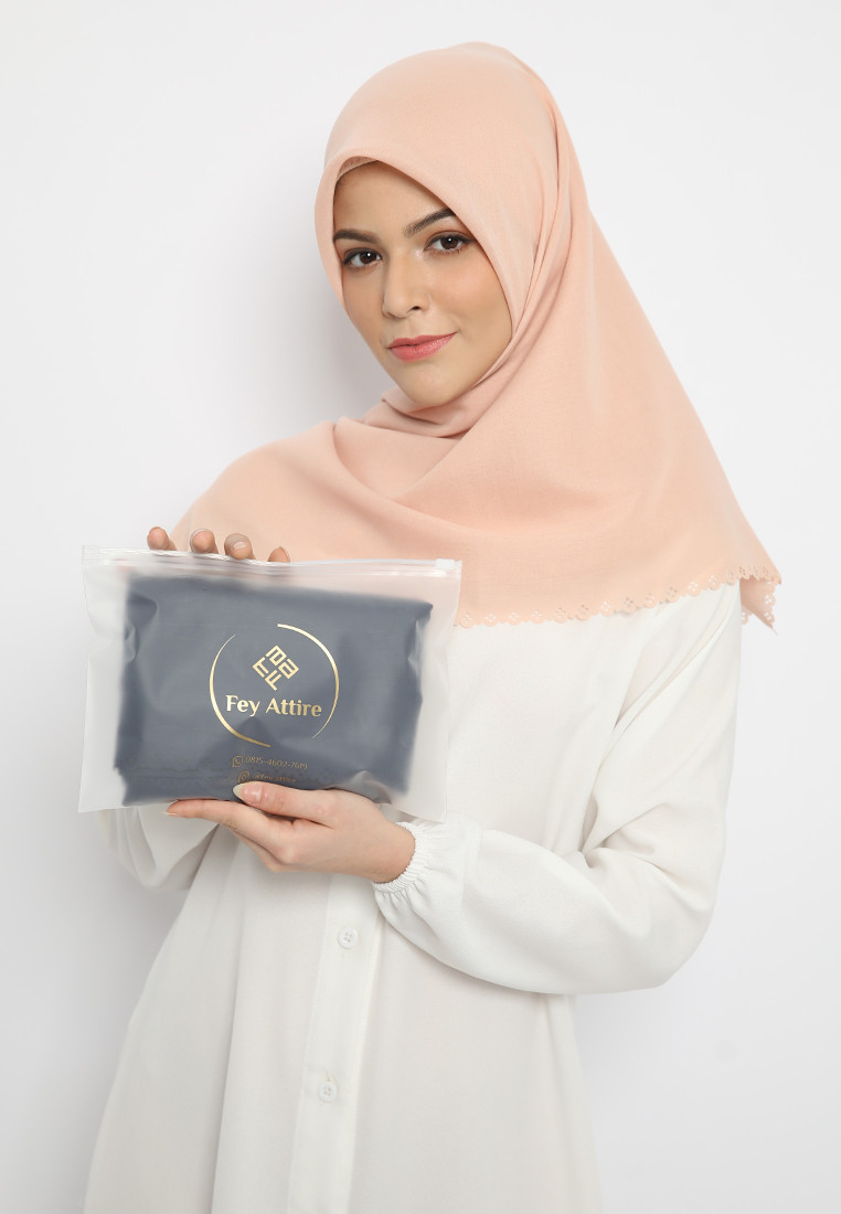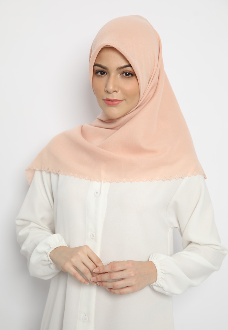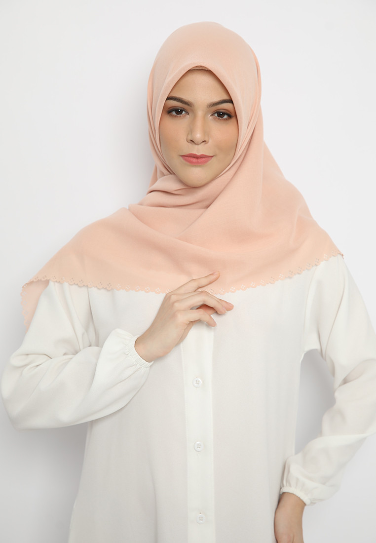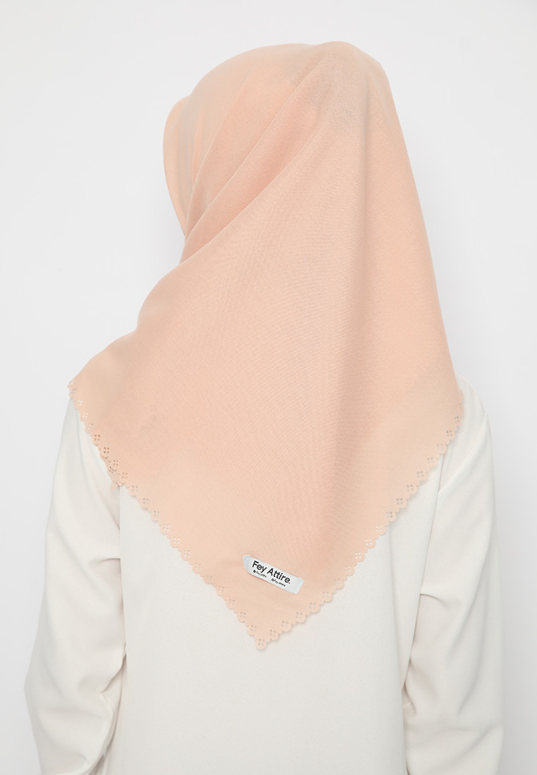 Jilbab segiempat memiliki finishing laser cut bunga yang cantik, menggunakan material voal magical yang nyaman digunakan untuk aktifitas sehari-hari. Packaging pouch yang bisa digunakan kembali.