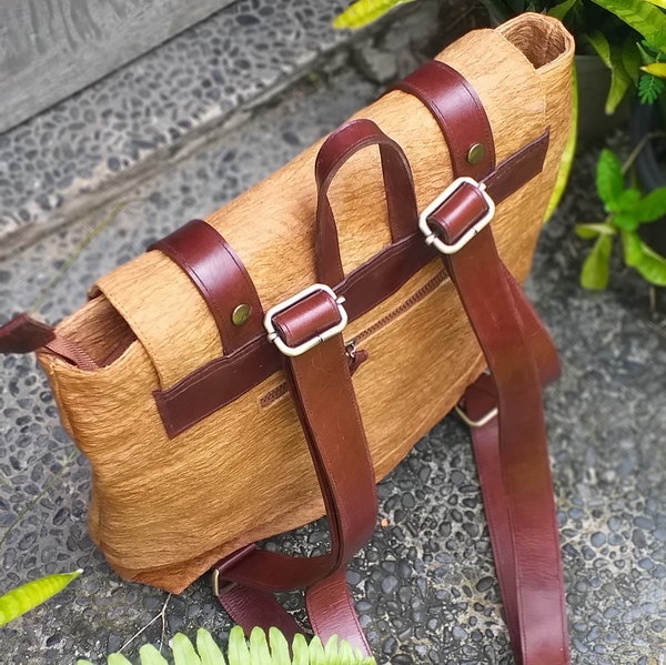 Backpack/ Tas Ransel Kulit Kayu dengañ ornamen, dipadu dengan Tali Kulit Sapi Asli.