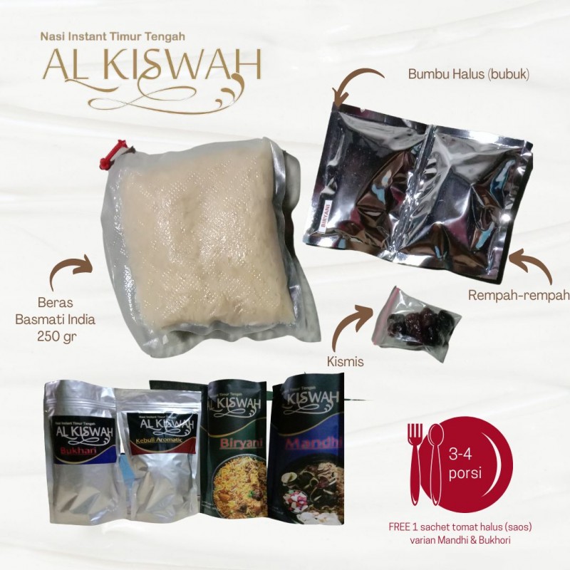 Setiap pac sudah lengkap berisi beras basmati 250 gram dan bumbu halu kebuli serta rempah untuk memasaknya.