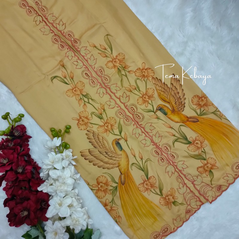 Kebaya Lukis Tema merupakan produk unggulan yang dilukis oleh Pelukis Bali. Mengangkat tema keanekaragaman fauna khas Nusantara. Dilukis dengan teknik natural yang menghasilkan lukisan alami menyatu dengan kain. Berbahan dasar kain rayon yang sangat nyaman digunakan, sudah berpola kebaya, lukisan terdapat pada sisi depan (kanan-kiri), tangan, dan belakang. Adapun keunggulan produk kami adalah dibuat handmade, setiap motif diproduksi terbatas, serta terdapat garansi lukisan awet dan tahan lama.