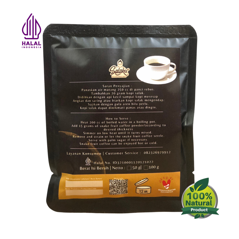 Cara enak minum kopi dengan kopi salak siap seduh tambah gula aren jika perlu. 1 pack sachet berat isi bersih 50 gram bisa untuk 2-3 cangkir.