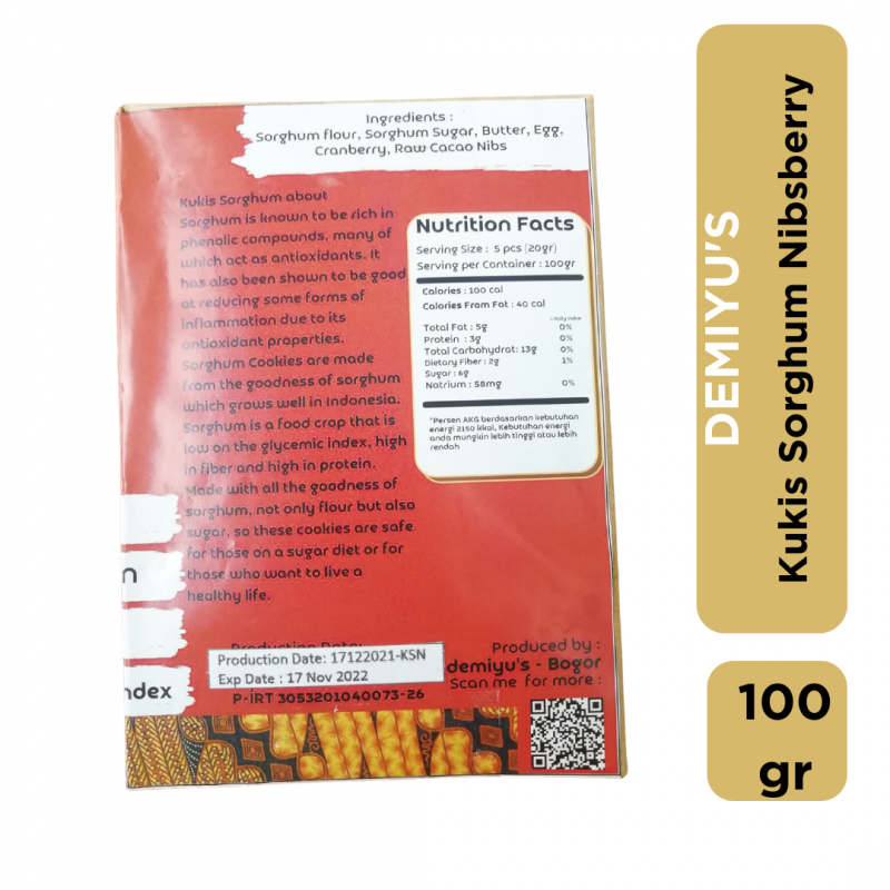 Kukis ini ramah cerna karena menggunakan tepung mix gluten free dengan sorghum sebagai bahan utama.