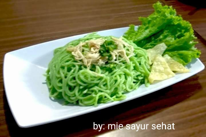 Mie yang berwarna ijo dan terbuat dari bahan sayuran hijau sawi
