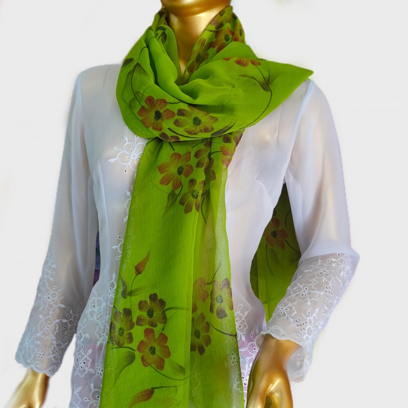 Scarf Lukis merupakan kebaya motif bunga yang ingin memberikan sentuhan indah sekaligus elegan. Desain bunga pada sisi kain menambah kesan berwarna pada scarf lukis ini. Disamping itu scarf ini menggunakan bahan kain sifon yang berkualitas, dengan berbagai motif pada kain maupun lukisan yang ditampilkan.