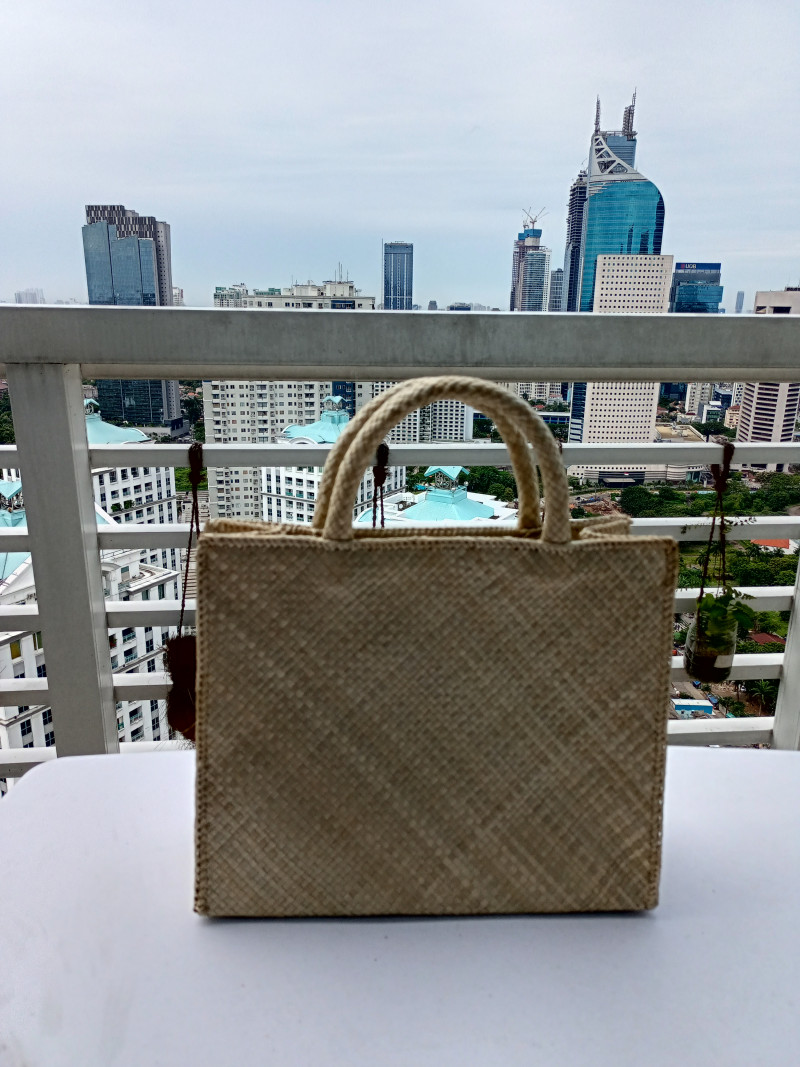 Tas anyam daun pandan polos warna natural yang banyak sekali dicari para pengrajin, karena dapat di maksimalkan untuk diberi motif-motif lukisan hiasan dan lain sebagainya. Sehingga tas akan lebih menarik dan memiliki nilai jual tinggi. Selain itu tas anyam pandan ini dapat langsung digunakan sebagai keperluan pribadi seperti, belanja ke pasar, dibawa ke sawah atau ke ladang, buat treveling dan sebagainya. Pastinya kualitas sudah tidak diragukan lagi.Warna : Natural Bahan : Daun Pandan Dimemsi± 30 *12 *25cm .Berat : 500 Gram