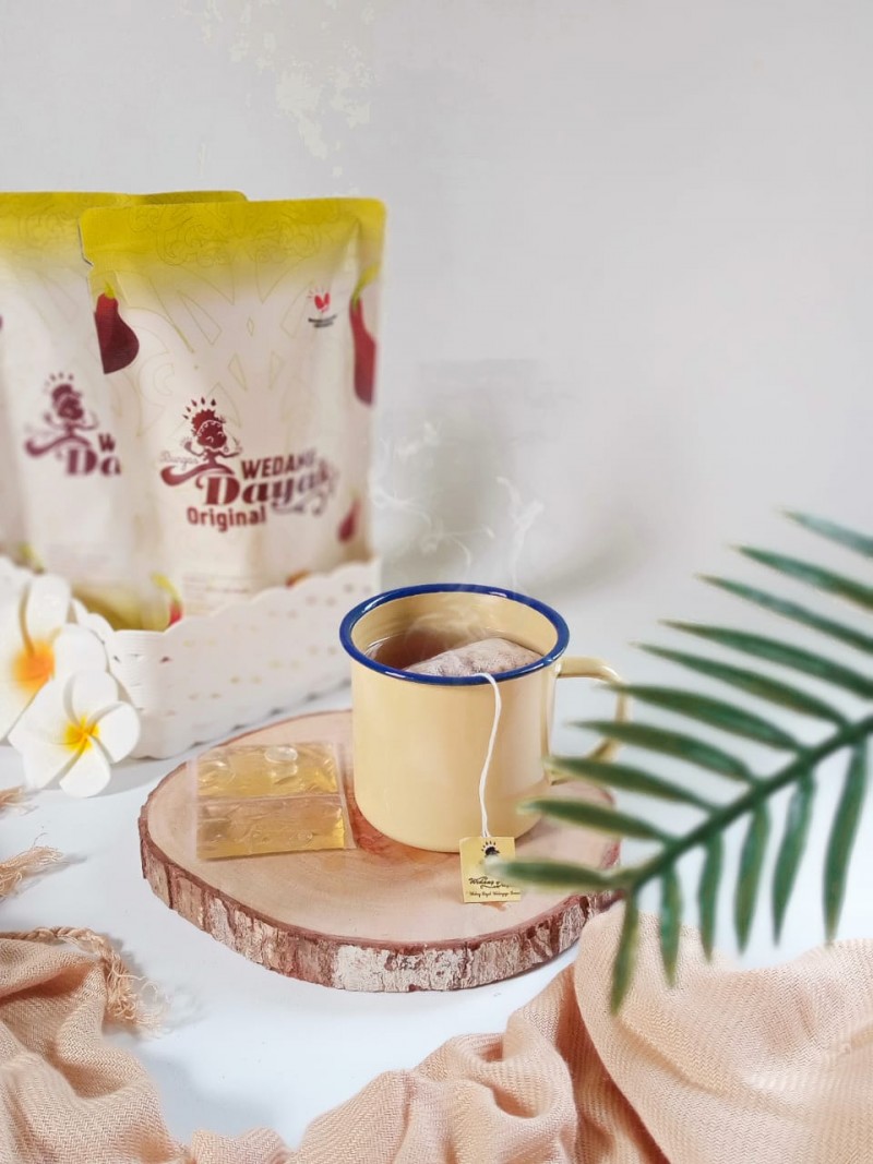 Wedang Dayakadalah minuman rempah khas Kalimantan berbahan dasar Bawang Dayak yang di kombinasi dengan Jahe merah dan madu hutan. Diolah higienis melalui proses pengovenan dan di kemas modern menggunakan Tea bag foodgrade yang aman bagi kesehatan tubuh dan ramah lingkungan. Sangat baik dikonsumsi sebagai imunbooster.