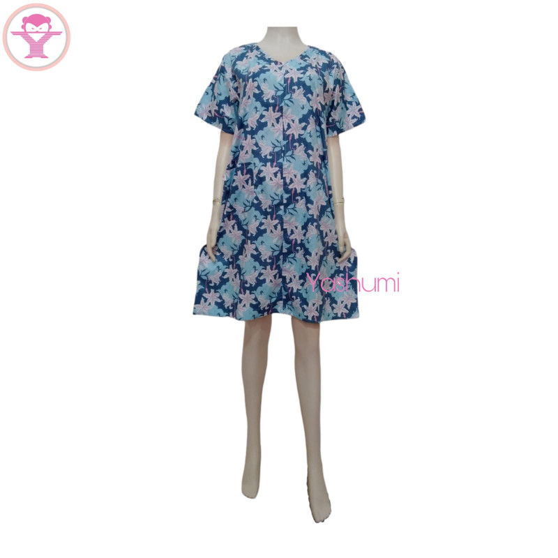 YASHUMI Daster Leher V Resleting Katun Premium Motif Bunga